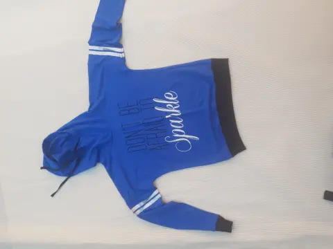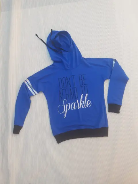 Bonita sudadera con capucha color azul,marca Material Girl,talla S,No tengas miedo a brillar", a estrenar sin etiqueta