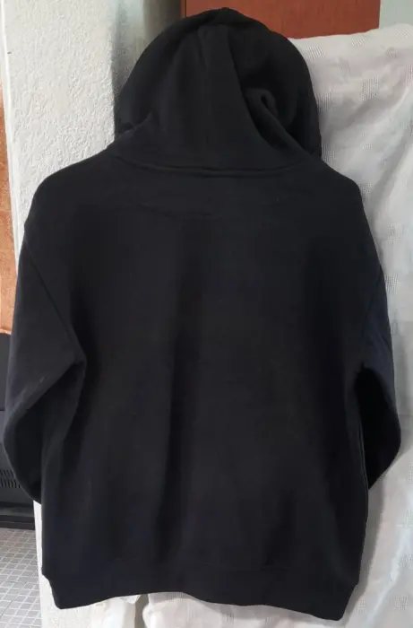 Sudadera con gorro color negro, talla S, trae xs pero viene amplia la talla, es usada, no trae detalle, medidas hombro a hombro-52, Axila a axila, 54,largo de la sudadera-61, largo de la manga-55, material poliester algodón.