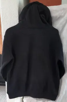 Sudadera con gorro. Sudadera con gorro color negro, talla S, trae xs pero viene amplia la talla, es usada, no trae detalle, medidas hombro a hombro-52, Axila a axila, 54,largo de la sudadera-61, largo de la manga-55, material poliester algodón.