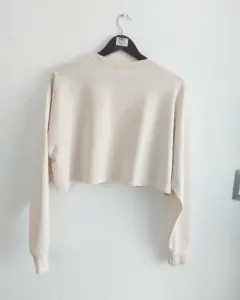Sudadera en tono beige Oversize, tipo Crop con strech; manga larga y luce suelta.De axila a axila: 59 cm.Largo: 38 cmTalla M/LIdeal también para el ejercicio.