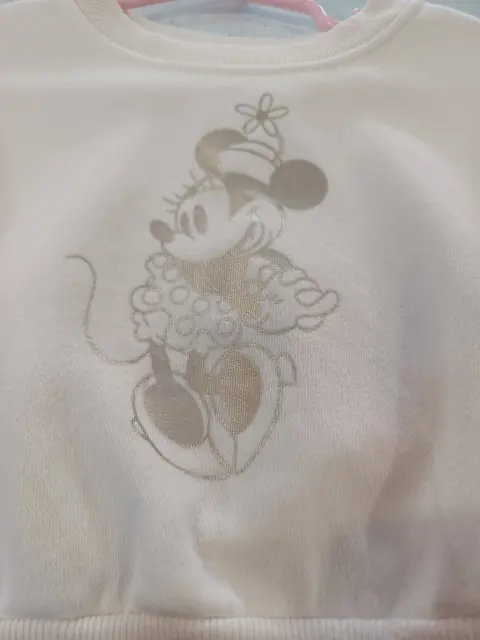 Hermosa sudadera color hueso con estampado de Minnie. Viene afelpadito de la parte de adentro, por lo que es muy suavecita y calientita.Es para beba de 3-6 meses