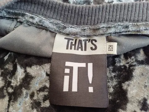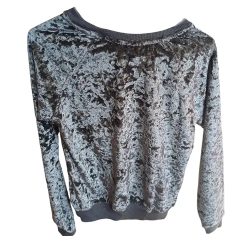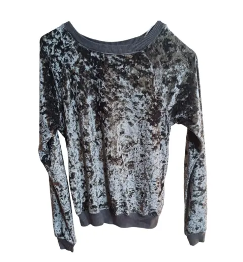 Sudadera de terciopelo. Sudadera manga larga, color gris, de terciopelo, cuello redondo, talla extra chica (xs) queda a chica (s) marca That's It, una sola puesta.