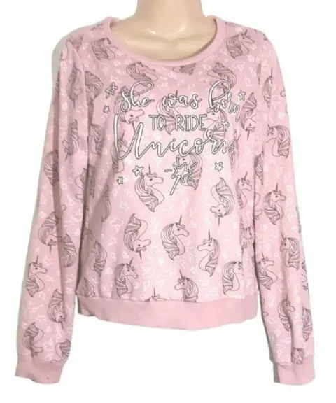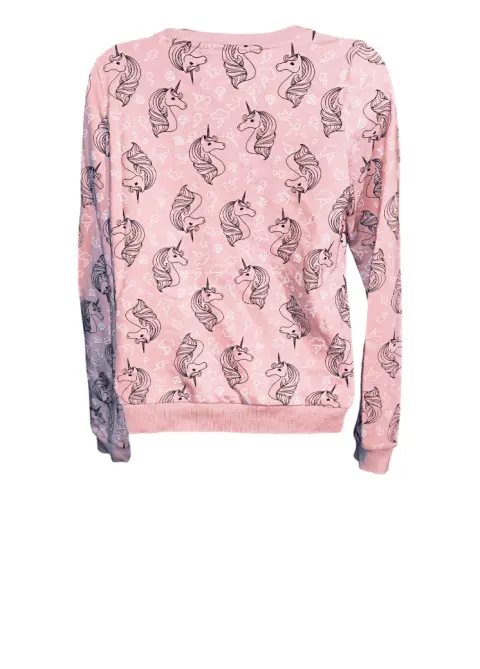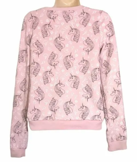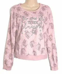 Sudadera de unicornio 🦄. Hermosa sudadera de unicornio color rosa , con letras y brillo en las letras esta en perfecto estado, solo unas manchas en los puños por el uso.Axila axila 42 cmLargo 54 cm