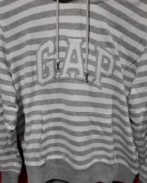 Sudadera GAP blanca rayas gris. COMO NUEVA!! Sin detalles , super cómodo , calientito y corte moderno. VISITA MI PAGINA PARA PRENDAS DE MARCA EN TODAS LAS TALLAS NUEVAS Y EN PERFECTO ESTADO.