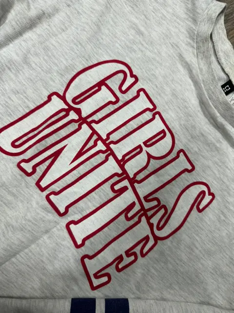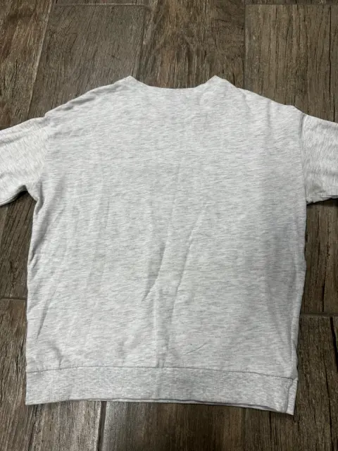 Sudadera gris. Sudadera con estampado Talla XsDetalle: una pequeña mancha en la manga, no es muy notoria (ultima foto)MedidasLargo: 54 cmAncho: 47 cmManga: 69 cm