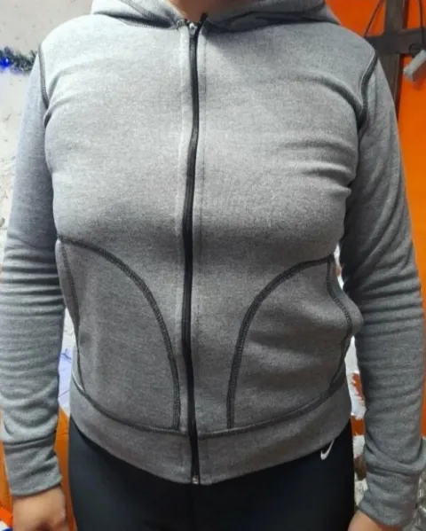 Hermosa sudadera gris super calientita, sin detalles, con gorro y bolsas delanteras