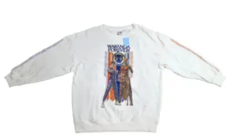 🌻 Sudadera Marvel Wacanda Forever. 🌻Esta sudadera con cuello redondo, con una silueta extragrande y un largo por debajo de la cintura 😉 está confeccionada con un suave tejido de vellón para brindar comodidad y está diseñada con puños y dobladillos para un ajuste ceñido ☺️👌🏻🌻Diseñada en un tono crema con estampado geométrico rojo ❤️ y azul 💙 en las mangas 😊🌻 Súper suave, cómoda y cálida 😊🌻 ¡Te encantará! 👌🏻😉