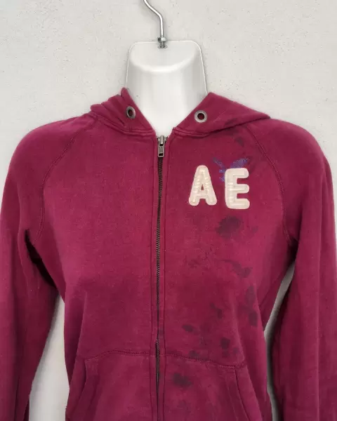Sudadera morada american Eagle. Talla XS, sin detalles, tiene gorro y bolsas, morada, bonita y cómoda