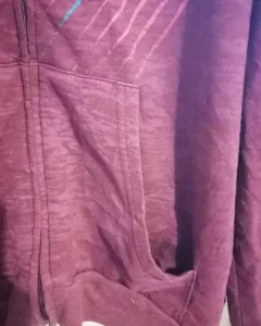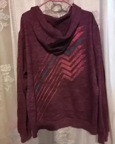 Sudadera con capucha morada, es xxl pero queda a M o L es super suave y cómoda. No tiene detalles, puede quedar a M o L