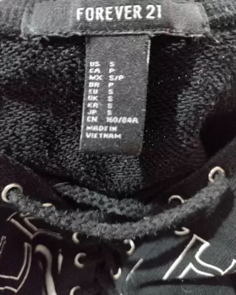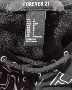 SUDADERA FOREVER 21, TALLA S CON ABERTURA CON CORDON DELANTERO,TIENE UNA MANCHAS PEQUEÑAS DE CLORO (EN LA ÚLTIMA FOTO SE MUESTRAN