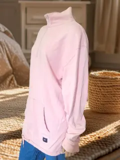 Sudadera Original Vanz. Sudadera Original Vanz, color rosa palido, talla 2XL, cuello alto con 1/4 de cierre, manga larga con puño semielastico, bolsillo doble delantero, cordon para ajustar cadera, hecho de algodón, mide 62cm de hombro a hombro, 63cm de axila a axila, 64cm de cintura, 72cm de manga con 80cm de largo del hombro hacia abajo en buen estado cosmetico