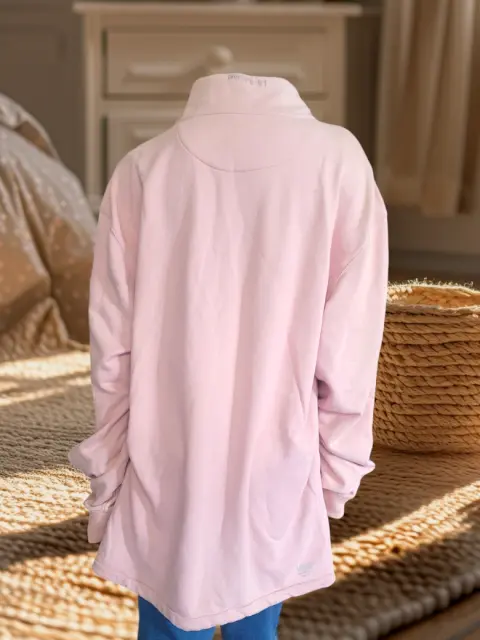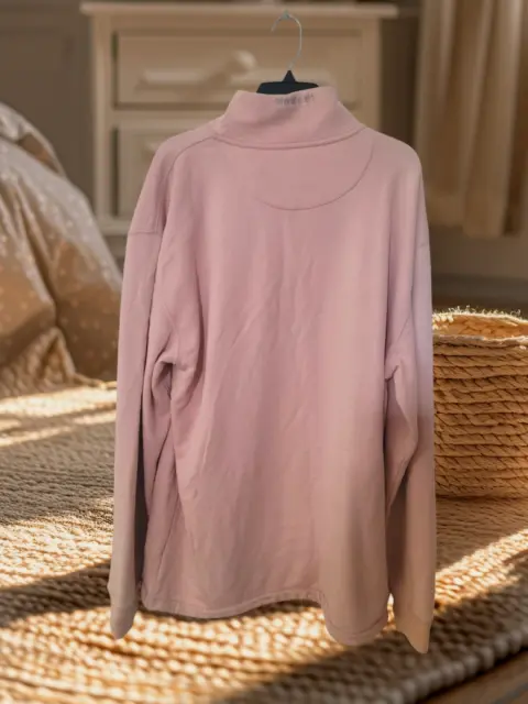 Sudadera Original Vanz, color rosa palido, talla 2XL, cuello alto con 1/4 de cierre, manga larga con puño semielastico, bolsillo doble delantero, cordon para ajustar cadera, hecho de algodón, mide 62cm de hombro a hombro, 63cm de axila a axila, 64cm de cintura, 72cm de manga con 80cm de largo del hombro hacia abajo en buen estado cosmetico