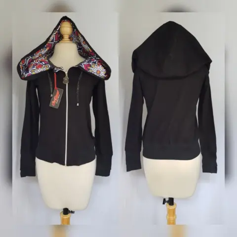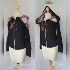 Sudadera color NEGRO ÉBANO mod "TALAVERA", capucha NO DESMONTABLE c/jaretas, cierre p/cremallera, 2 bolsos vivo y manga larga terminada en puño. Talla G. Dimensiones cms: 40 hombro, 50 axila, 46 zona baja, 60 largo, 67 largo manga. 84% algodón, 13% poliéster, 3% elastano. Para lavado en casa.***DISEÑO INSPIRADO EN LA TALAVERA POBLANA DE MÉXICO***CÓDIGO AUTENCIDAD: YSDCHTAL10***LA CAPUCHA DE ESTA PRENDA PUEDE USARSE COMO BUFANDA, ESTILO "TEHUANA" O CONVERTIRSE EN BOLSA***