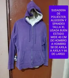 SUDADERA TALLA XL. SUDADERA DE ALGODÓN, POLIÉSTER Y SPANDEX TALLA XL USADA BUEN ESTADO SUPER ACOLCHONADA MIDE 40 CM DE HOMBRO A HOMBRO Y 58 DE AXILA A AXILA Y 66 CM DE LARGO