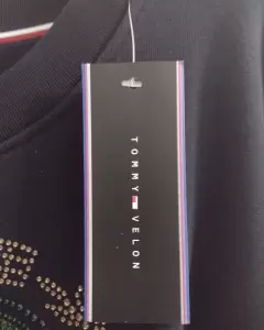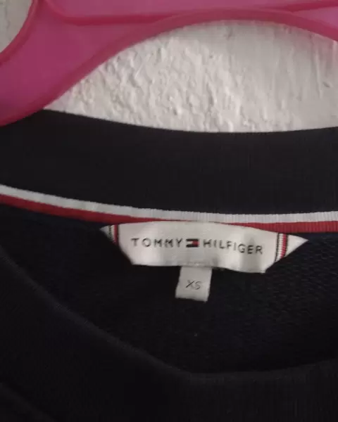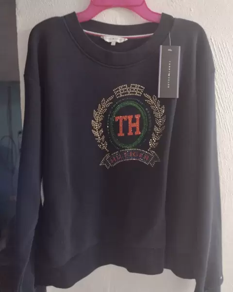 Sudadera Tommy azul marino, con el logo de pedrería,es talla xs pero queda a una talla s,