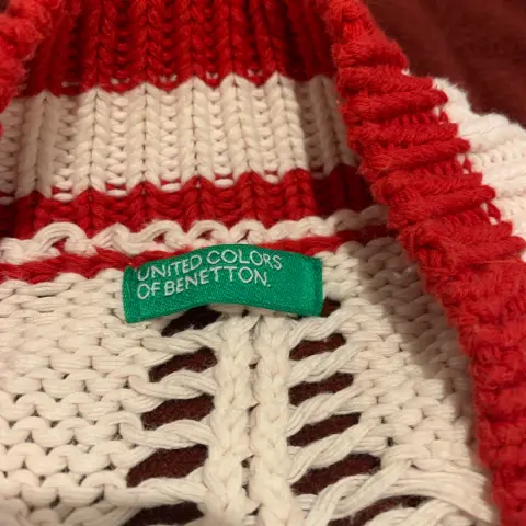 Blusón tejido color blanco con aplicaciones en rojo, talla M marca United Colors of Benetton