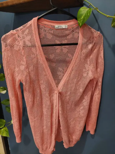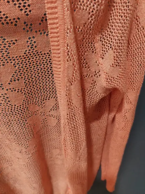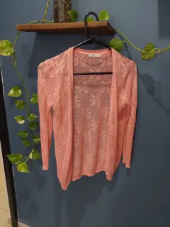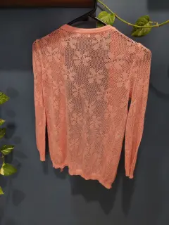 Bonito suéter muy femenino, color melón, tipo tejido con estampado en flores, muy fresco