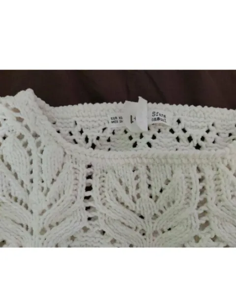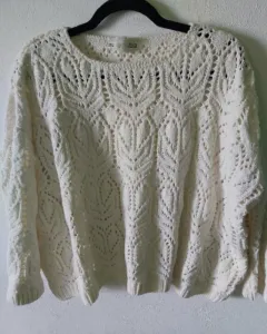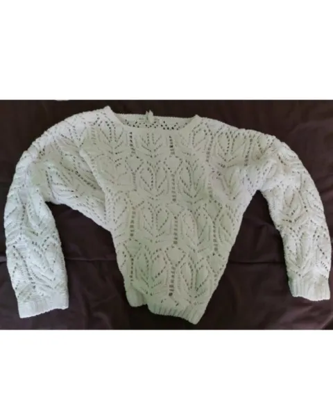 Bonito sueter tejido over size. Usado, sin detalle con manga 3/4 y holgado. Queda tambieb a talla M ya que es holgado y viene amplio. De largo mide 50cm, de ancho 70cm, del cuello a la manga 65cm y de la manga 40cm. Sugiero que te guies con las medidas