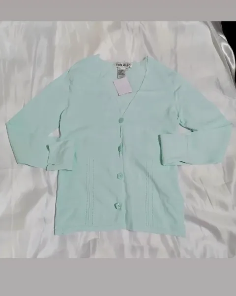 Cardigan. Color verde agua muy bonito cuello V con botones cuadrados la tela es viscosa. Estira