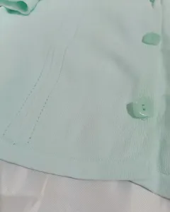 Color verde agua muy bonito cuello V con botones cuadrados la tela es viscosa. Estira