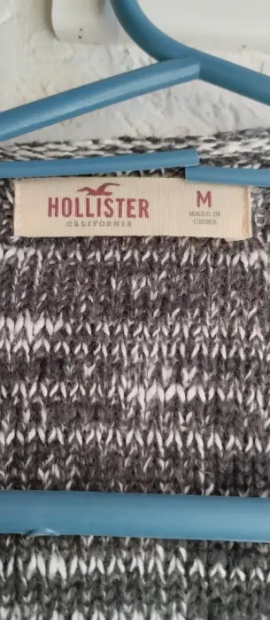 Sueter tipo cardigan marca Hollister talla M,tejida colores gris, blanco y negro