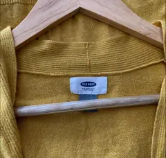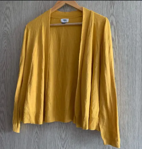 Cardigan OLD NAVYTalla MColor mostazaEs delgado y ideal para la época de calorMedidasAncho 48 cmLargo 56 cmNo tiene ningún detalle y color está al 100Esta en perfectas condiciones