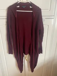 Cardigan color vino. Cardigan con bolsas y gorro, la parte de los lados es más larga que la parte de enfrente y atrás Justo como se ve en las fotos, en perfectas condiciones.