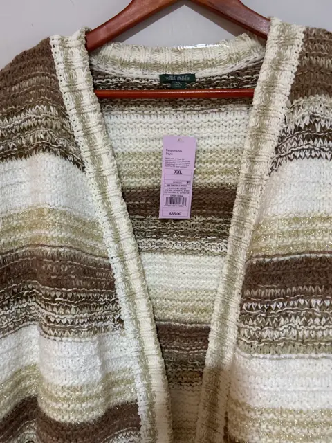 ✅cárdigan abierto ✅súper bonito ✅color café , beige y dorado ✅nuevo con etiqueta 🏷️ ✅talla 2XL ✅medidas : de axila a axila 65 cm y largo 56 cm ✅aprovecha súper precio 😊