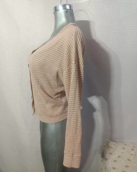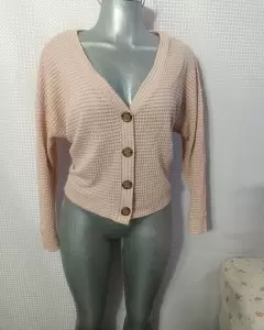 Cárdigan corto con botones. Cárdigan de punto color palo de rosa sin detalles dice talla S pero igual queda una M