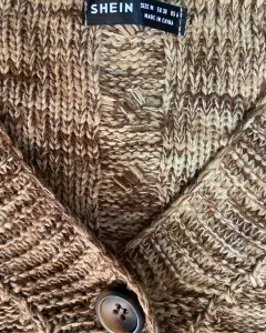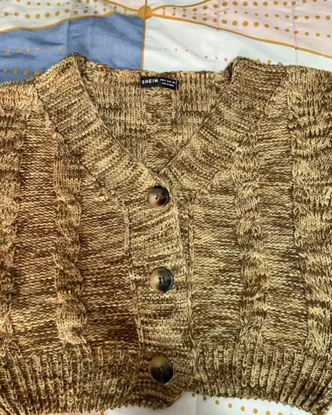 Cárdigan de estambre, cuello V, es corto (llega a la cintura), talla M, no ha sido usado.