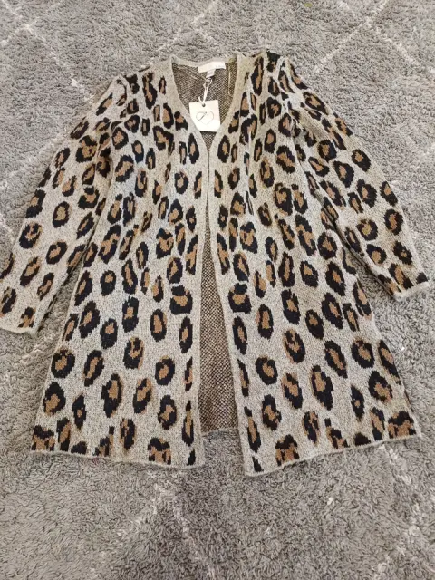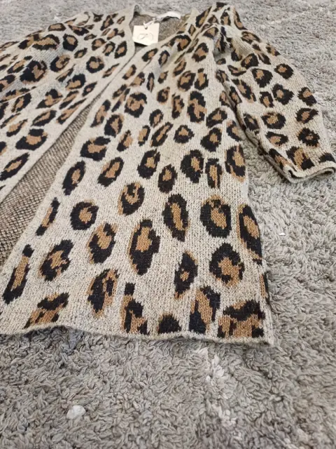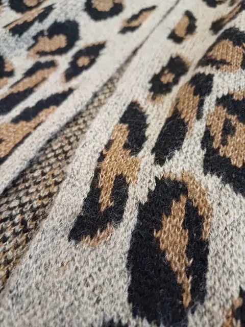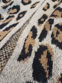 Hermoso cárdigan de estampado de animal print. Es muy suavecito y delgadito pero muy abrigador. Tiene bolsitas a los costados. Medidas : hombros 43 cm, ax a ax 56 cm, largo 87 cm.