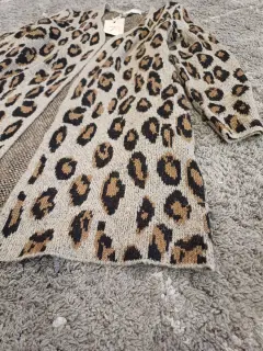 Cárdigan de animal print. Hermoso cárdigan de estampado de animal print. Es muy suavecito y delgadito pero muy abrigador. Tiene bolsitas a los costados. Medidas : hombros 43 cm, ax a ax 56 cm, largo 87 cm.