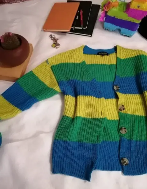 Cardigan de punto talla s. Hermoso cardigan de punto talla ch.Tiene colores muy vivos.Medidas:Axila a axila 47 cmLargo 51 cmManga 49 cmPor el tipo de tela estira hasta 10 cm mas.Solo se usó 2 veces.