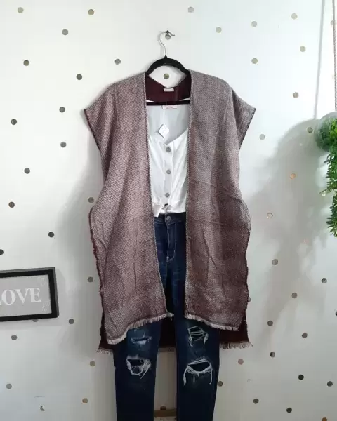 Haz q tú outfit tenga mucho estilo con este bellísimo cárdigan!!Tipo chaleco calientito y muy cómodo!Totalmente nuevo!Tejido suave y calientito!!Color de fondo vino acanalado!!Unitalla queda desd una talla XS hasta L!! Con gusto resuelvo cualquier duda!!