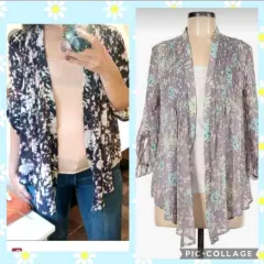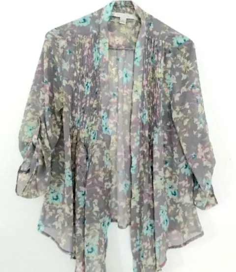 Cardigan Floral casual. Una belleza! Muy femenino y fresco. Talla XS y queda perfecto tambien a S. Nuevo sin etiqueta, sin strech. No lleva botones. Combinalo con blusas de tirantes similares a sus colores. Tela chifón tipo seda.Medidas: 46 cmLargo trasero: 60 cmLargo delantero: 75 cm