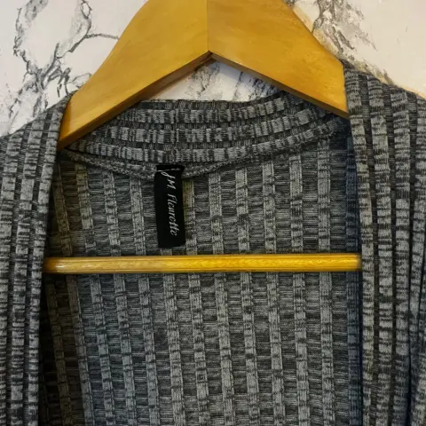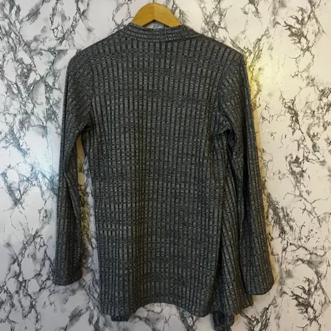 Cardigan gris acanalado. La tela es muy linda y suave, práctico para transportar, como nuevo 🌸Solo espero 2 días para que se refleje el pago en efectivo ,favor de no detener la prenda !!! Si no te interesa comprar no hagas ofertas Gracias ☺️ !!!