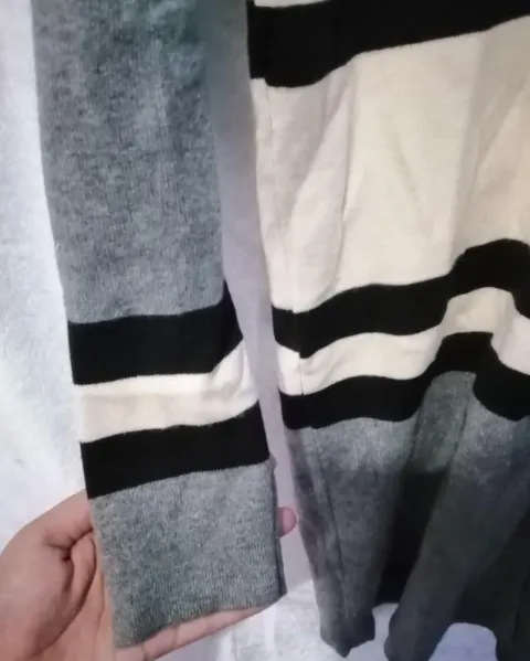 Cardigan gris con beige, es unitalla pero viene amplio de hombros ideal para tallas G o XG, solo puesto una vez como nuevo