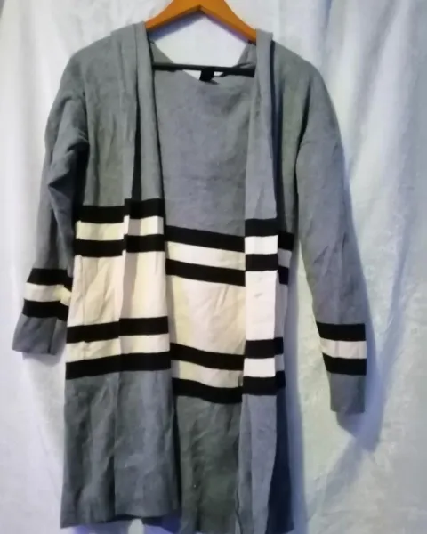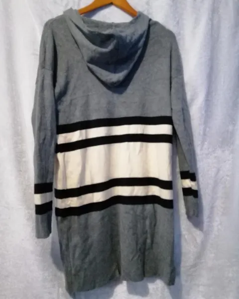 Cardigan gris con gorro,. Cardigan gris con beige, es unitalla pero viene amplio de hombros ideal para tallas G o XG, solo puesto una vez como nuevo