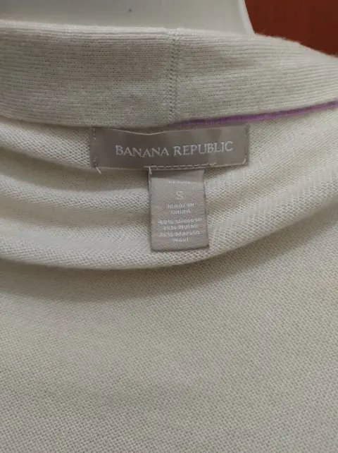 Cárdigan hueso Banana Republic. Cárdigan beige que combina con todoTalla S:Ancho axila: 50 cmsLargo total espalda: 78 cmsLargo manga desde axila: 48 cmsEN EXCELENTES CONDICIONES, YA QUE TUVO POCAS PUESTASCOMPOSICIÓN:40% Viscosa35% Nylon25% Lana Merino