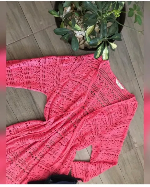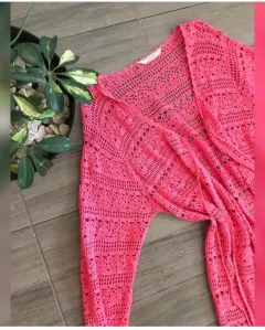 Cárdigan precioso en color rosa, es tejido , maxi , puesto se ve precioso
