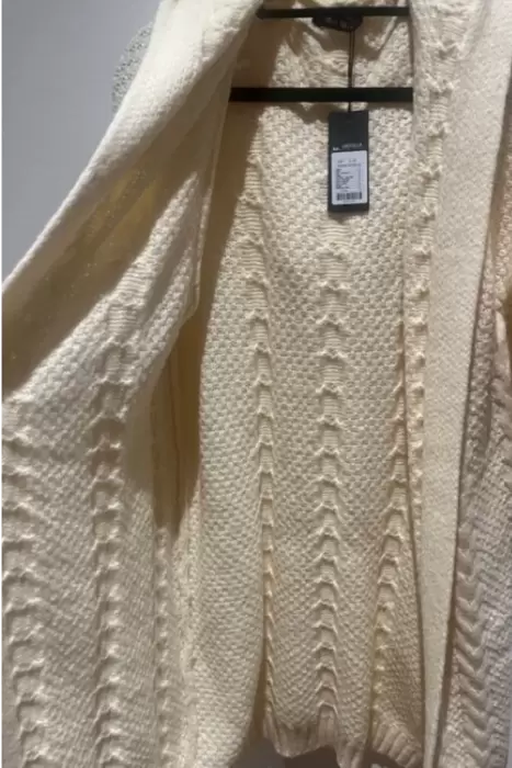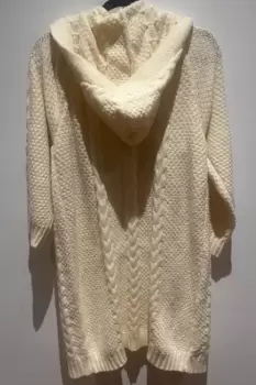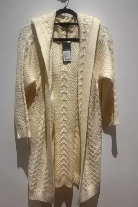 Cardigan maxi con capucha. Estrena este delicioso suéter maxi de punto mega caliente en un color neutro que va con todo aparte que su diseño está increíble y tiene gorra para calentarte todo el cuerpoHombro a hombro 35cmLargo 93cm