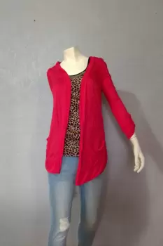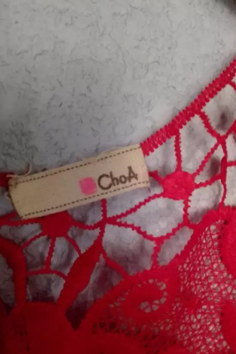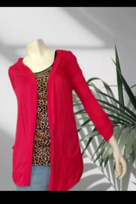 Cardigan Rojo. Cardigan rojo, Manga 3/4. con diseño tipo ganchillo en espalda, Asimetrico de los costados de enfrente tela ligera,Tela ligera. (Da de una talla S a una M)