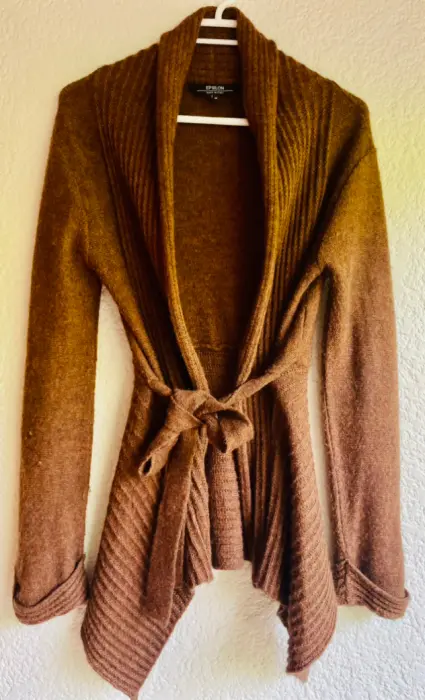 Cárdigan súper lindo de lana. No lo dejes ir, está padrísimo, está como nuevo. Es Épsilon y lo compré en Palacio de Hierro.