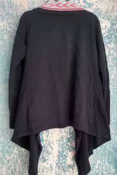 Cárdigan tribal. Cárdigan azul marino con detalles tribales en el cuello, la parte inferior termina en punta, super bonitoTalla unitalla