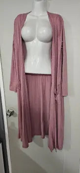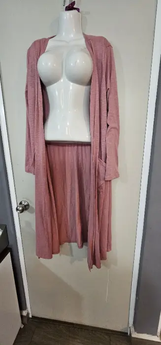 Ensamble. Ensamble largo color rosa viejo, con bolsos a los costados, fresco y ligero