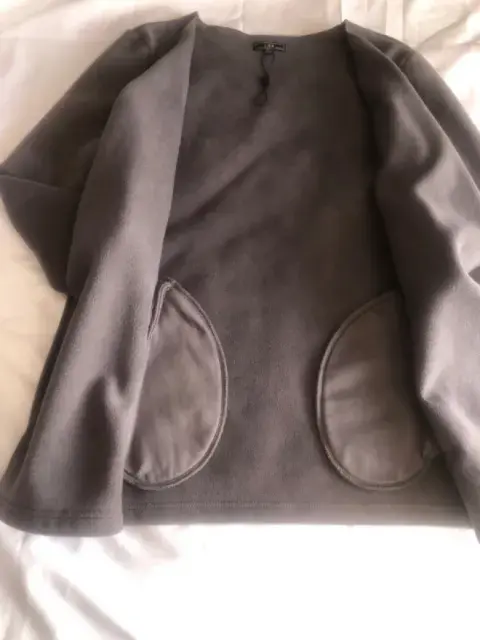 Ensamble de polar, es tela que no se le hace pelusa, sin detalles, en perfecto estado, espalda 42, axila axila 51 cerrado, largo de manga 62 largo total 75, con bolsas. Estira y puede quedar también a M