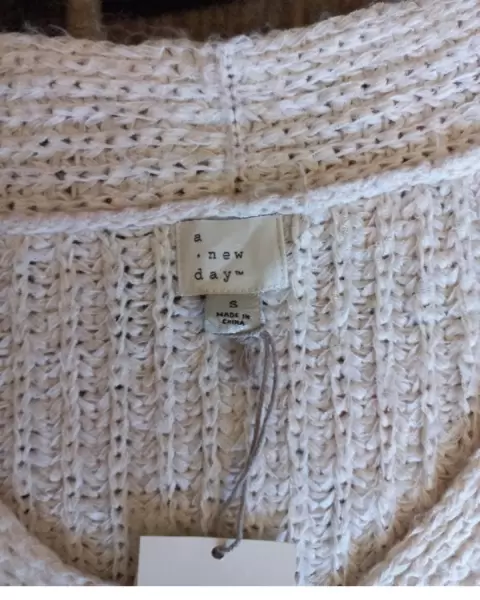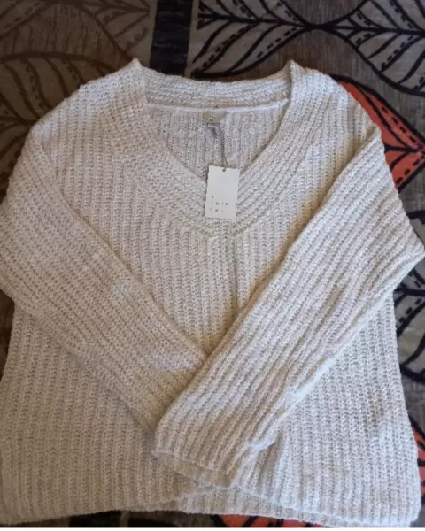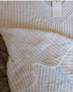 Hermoso suéter color crema muy suave, tejido industrial, talla S pero esta amplio, queda a M o G sin problema, cuello V con aberturas a los costados!!