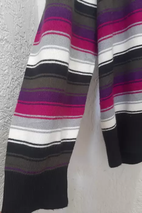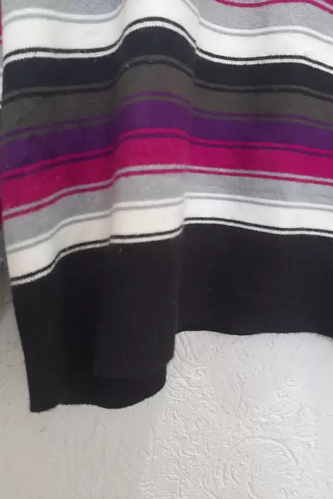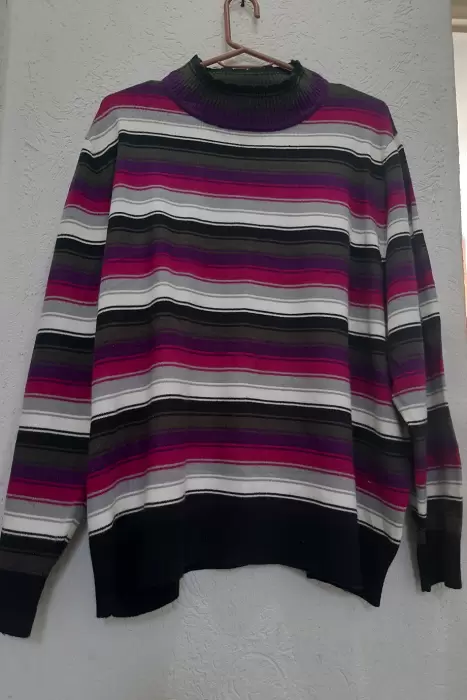Hermoso sueter multicolor en tonos lola morado se puede apreciar en la foto es nuevo sin etiqueta por lo que esta en perfecto estado, esta super bonito, es talla 2X pero queda mejor a talla L o XL el material es suave al tacto es de la marca Sag Harbor.