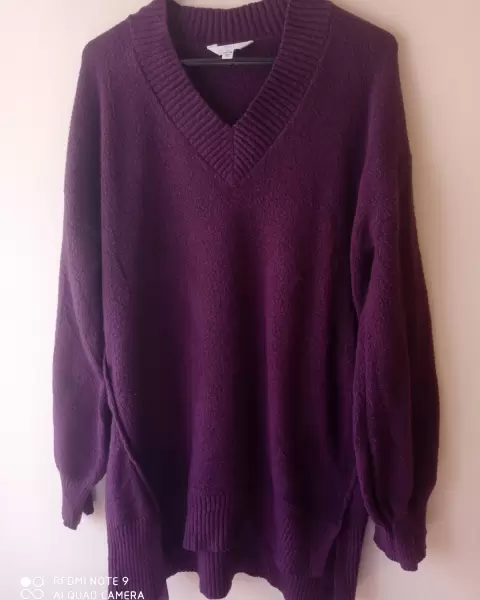 Hermoso súeter super calientito y cómodo. Super bonito suéter,con su color intacto, solo una puesta.no roto,no pelusas,no manchado,todo en excelente estado 10 de 10.Medidas:80cm largo,57cm axila axila