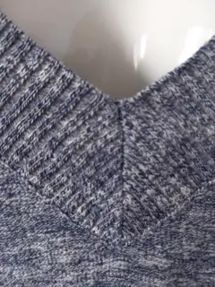 Jaspeado en V. Bello suéter ligero, cuello en V profundo, sesorte en puño y cintura. Ligero, versátil y fresco